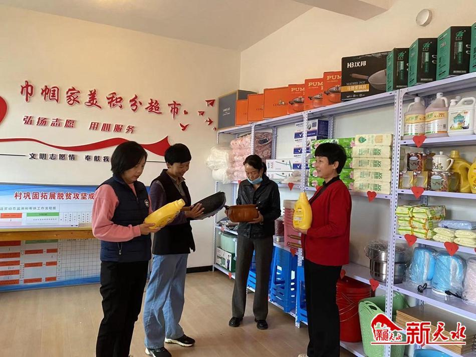 新天水讯 近日,甘谷县新兴镇史家坪村开展“巾帼家美”积分超市兑换活动,旨在利用2023年新建成的“爱心超市”,运用“积分制”管理办法,努力把积分超市建成妇女群众互学互比的新平台,积极探索乡村治理新方式,有效改善村容村貌。