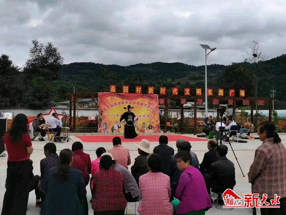 新天水讯 为深入学习宣传贯彻党的二十大精神,弘扬中华优秀传统文化,丰富群众精神文化生活,扎实开展新时代文明实践活动,近日,甘肃省清水县秦剧团有限公司在白沙镇各村党群服务中心、新时代文明实践站、文化广场等阵地开展“2023年戏曲进乡村”惠民演出,为广大村民送上了一场场精彩的文化盛宴。
