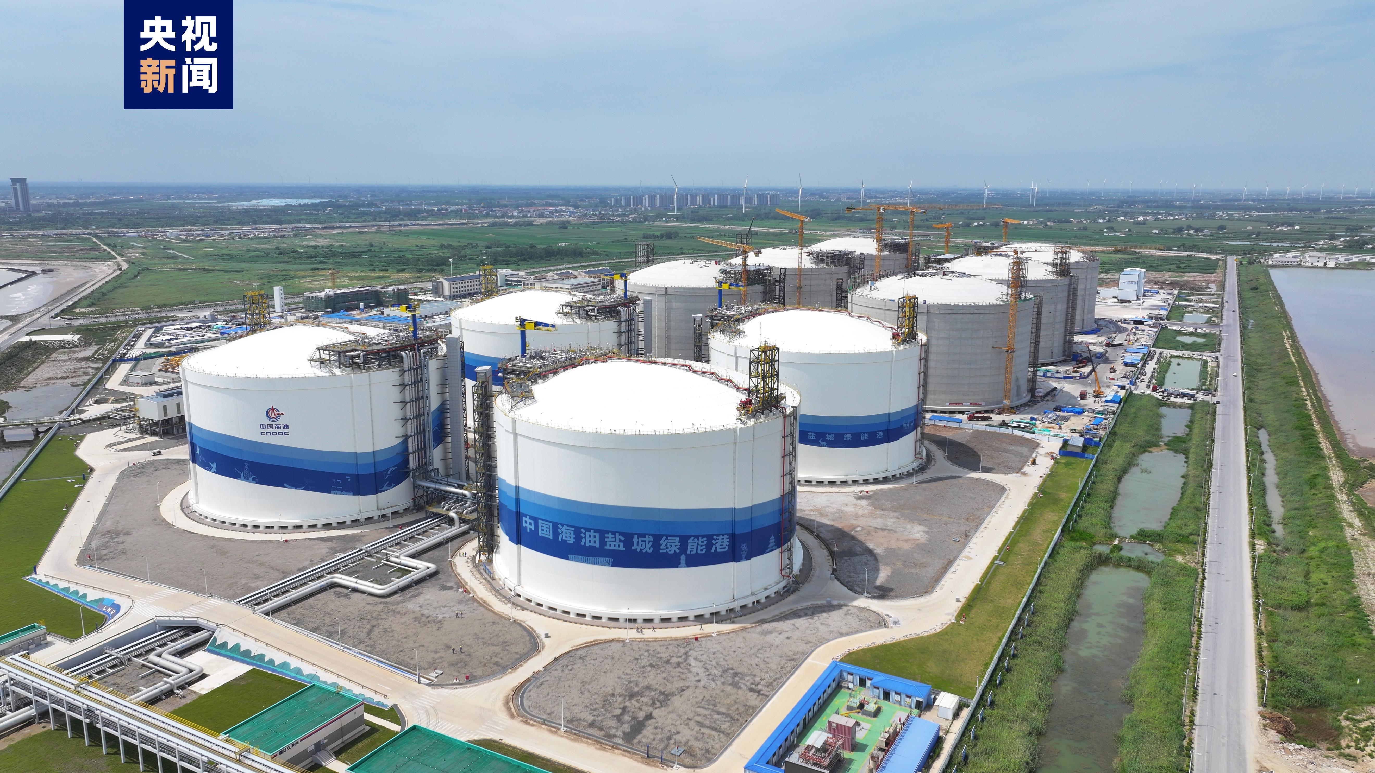 中国海油盐城“绿能港”位于江苏省盐城市滨海港工业园,共建造4座22万立方米储罐和6座全球最大的27万立方米储罐,总罐容达250万立方米,是国内规模最大的液化天然气储备基地。目前,盐城“绿能港”已投用4座22万立方米储罐,通过槽车和管道两种外输方式,向苏、豫、皖、鲁等省份供应天然气,接卸的35亿立方米可满足1000万户家庭约18个月的用气需求。