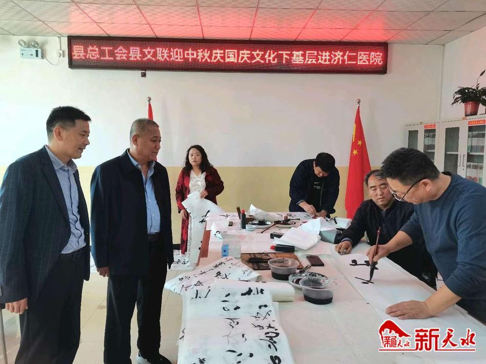 图为甘谷县总工会携手县文学艺术界联合会来到甘谷县济仁医院工会,用笔墨向基层一线的劳动者致敬。(柳桐 摄)