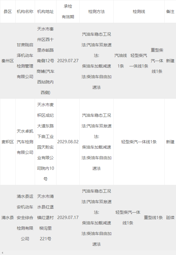 天水市生态环境局关于机动车环保检验承检机构目录新增名单的公告