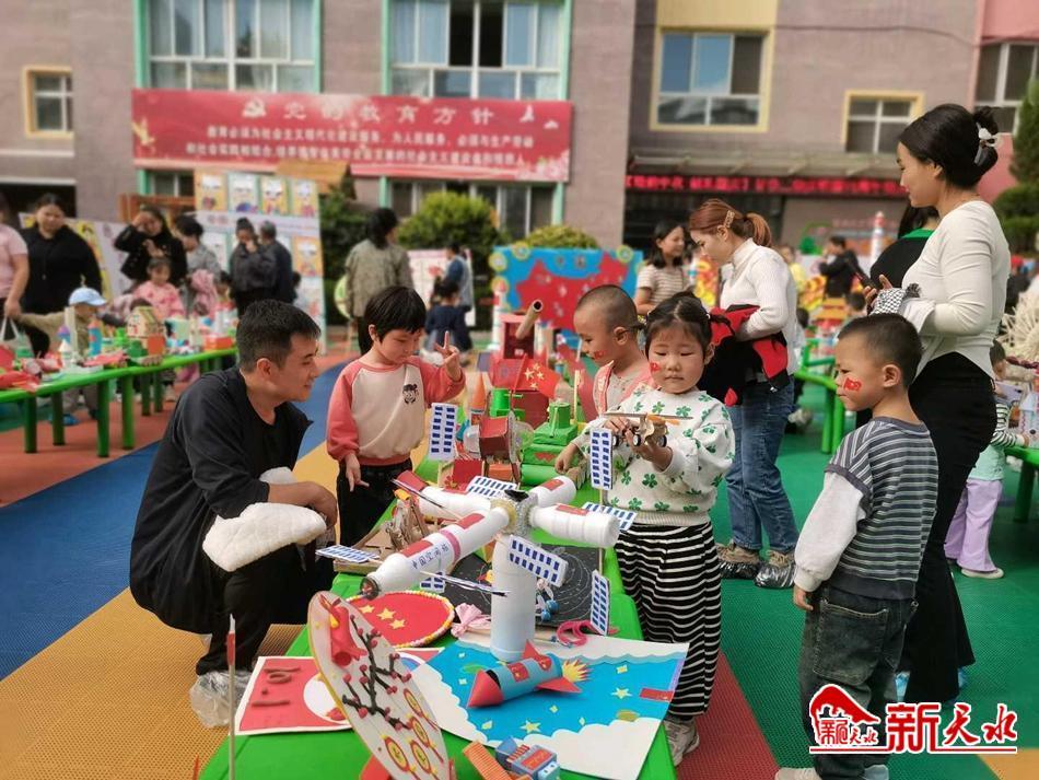 图为甘谷县第三幼儿园开展幼儿作品展,为祖国母亲74周年华诞送上了美好的祝福。王建军 王萍萍 摄