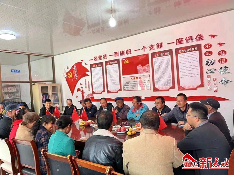 图为清水县白驼镇高峰村邀请“五老”“乡贤”举行迎中秋庆国庆茶话场景。刘涛 摄