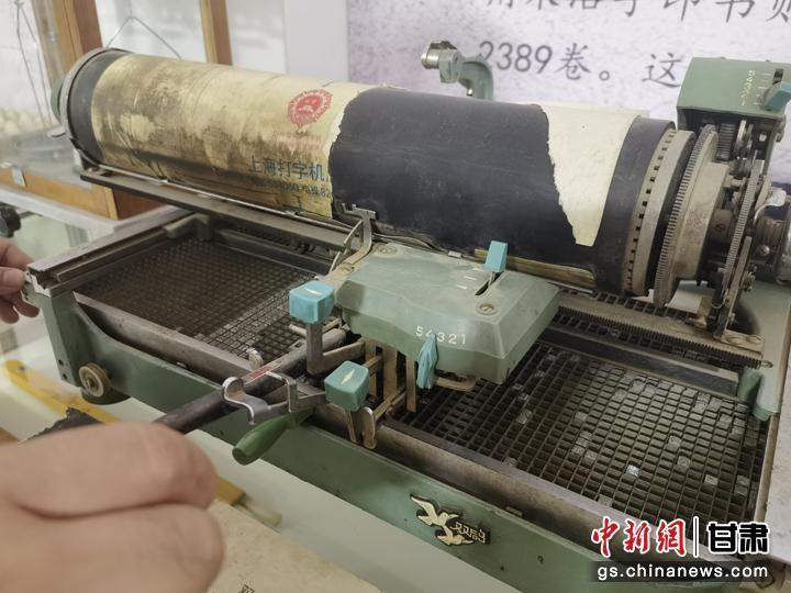 近日,甘肃省白银市靖远县大坝村民俗博物馆吸引游人参观。图为老式打字机。刘玉桃 摄