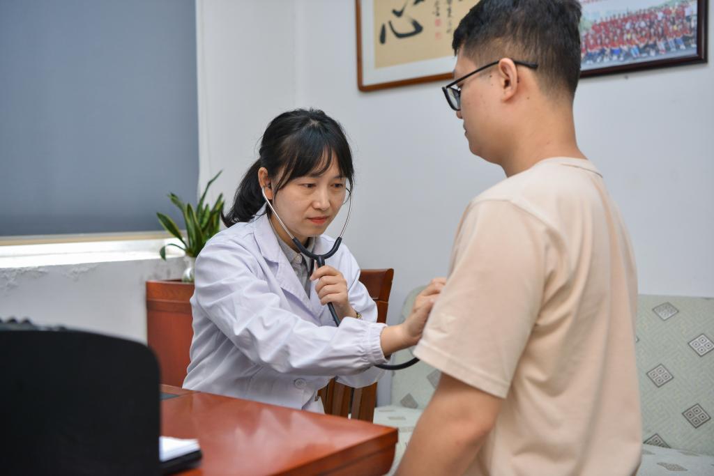 10月8日,范文娟医生为患者进行身体检查。(湖南省人民医院供图)