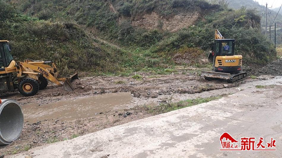 新天水讯 10月13日,甘谷县武家河镇积极维修水毁道路,确保群众安全出行。