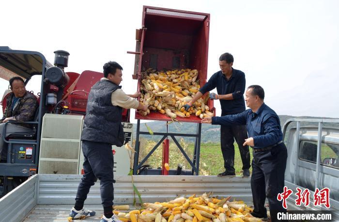 图为农技人员帮助村民装车收获的玉米。天水市委宣传部供图
