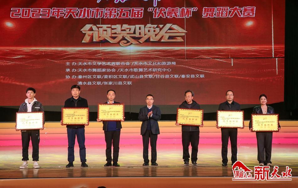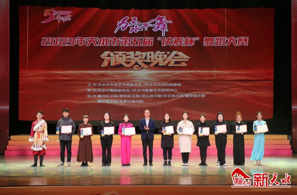 新天水讯 【记者 马凯】10月20日晚,由天水市文学艺术界联合会和天水市文化和旅游局主办的天水市第五届“伏羲杯”舞蹈大赛颁奖晚会在秦州大剧院举行。市委常委、宣传部部长王文东,市人大常委会副主任何晓斌,副市长董小平,市政协副主席吴立新观看晚会并为获奖者颁奖。