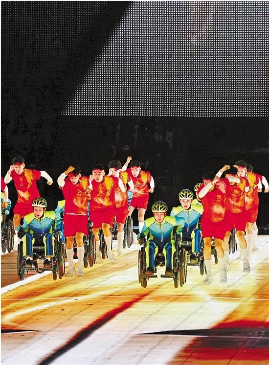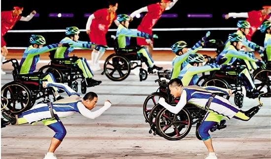 如此的舞蹈编排,寓意着无论在运动场上,乃至其他任何奔赴梦想的征途上,残障人士与健全人携手向前、并肩共进、守望相助。残健共融、美美与共也是这届精彩亚残运会的深刻主题。