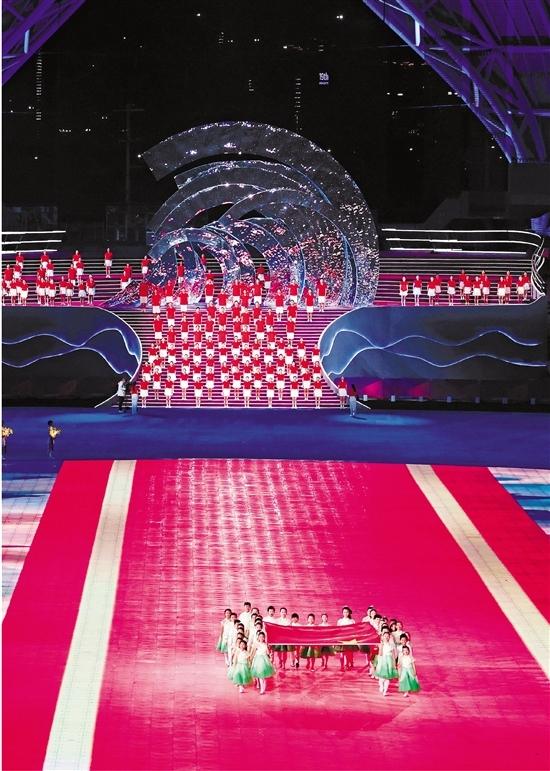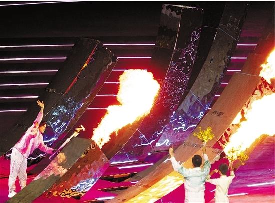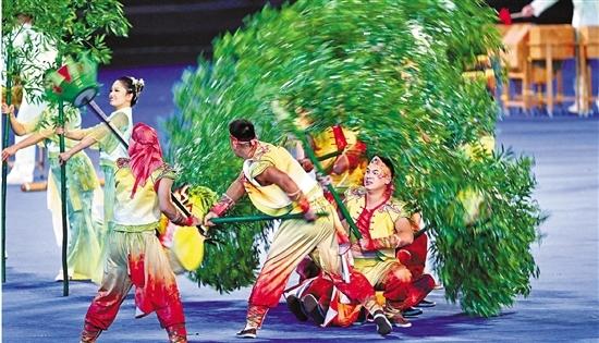 开幕式上的文艺表演中千变万化的金桂花。记者 贺元凯 摄