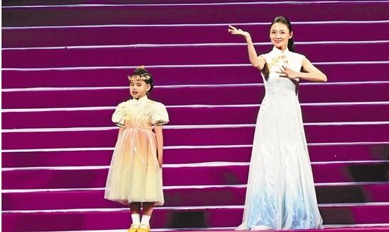 视障女孩与“手语姐姐”毛董莱在开幕式上表演。 记者 董旭明 摄