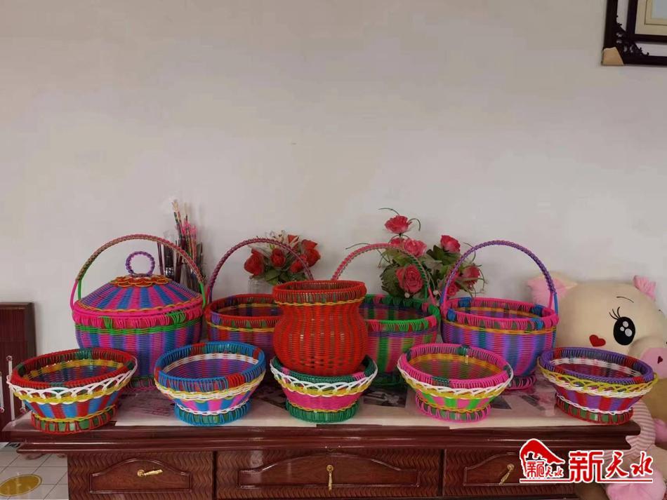 郭爱珍的身体状况不好,导致她不能出门务工,家里还有两个孩子在上学,收入来源少,经济条件较为困难,因此平时只要有空,她就编织各类篮子、果盘等纯手工工艺品,等逢集日拿到集市上卖,以补贴家用。增加收入的同时,也让她的生活不再单调。这些精巧的手工艺品一度能卖到200多元,靠着这些,郭爱珍一家有了又一重要的收入来源。