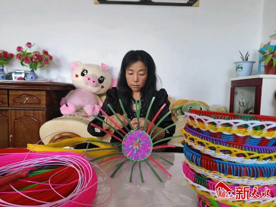 “我是通过网络上的视频教程和直播一点一点摸索学习编织花篮,边学习边研究。编花篮的过程比较繁琐,既要设计花样,还要搭配颜色,编一个少则一天多则三天,很考验耐心和细心。”郭爱珍说。