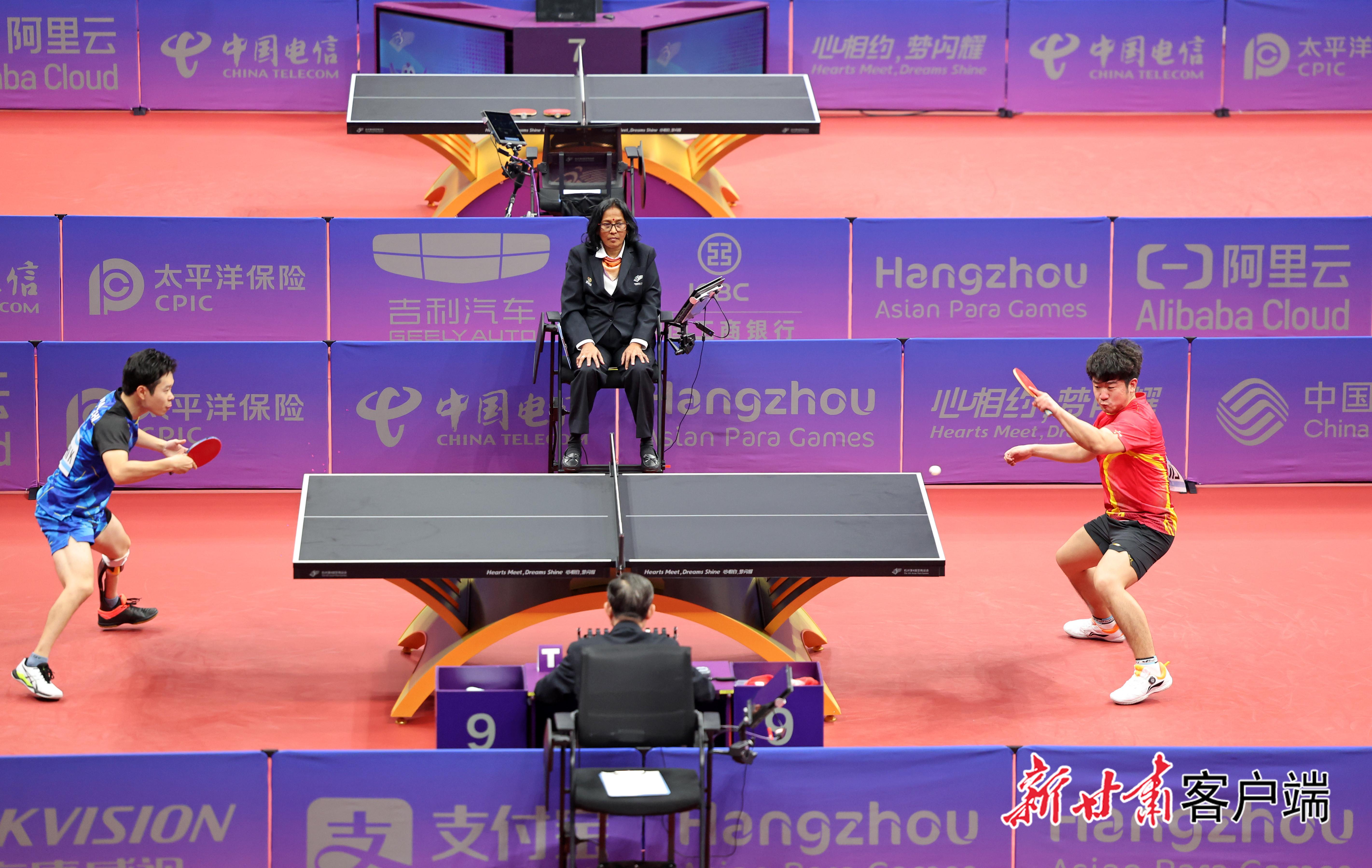 10月25日,在杭州亚残运会乒乓球男子单打9级比赛中,甘肃选手刘朝栋获得该级别的铜牌。