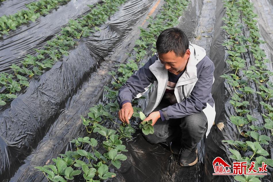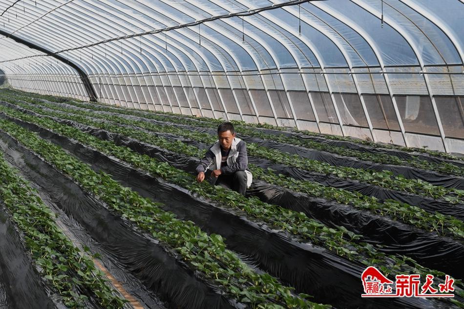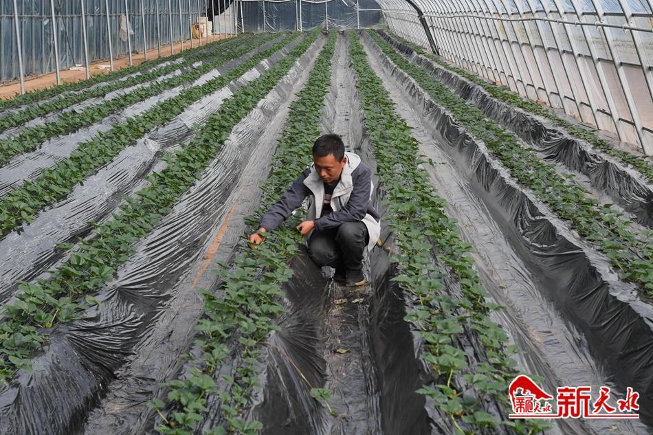 10月30日,清水县现代农业产业园草莓大棚内工人在除草。