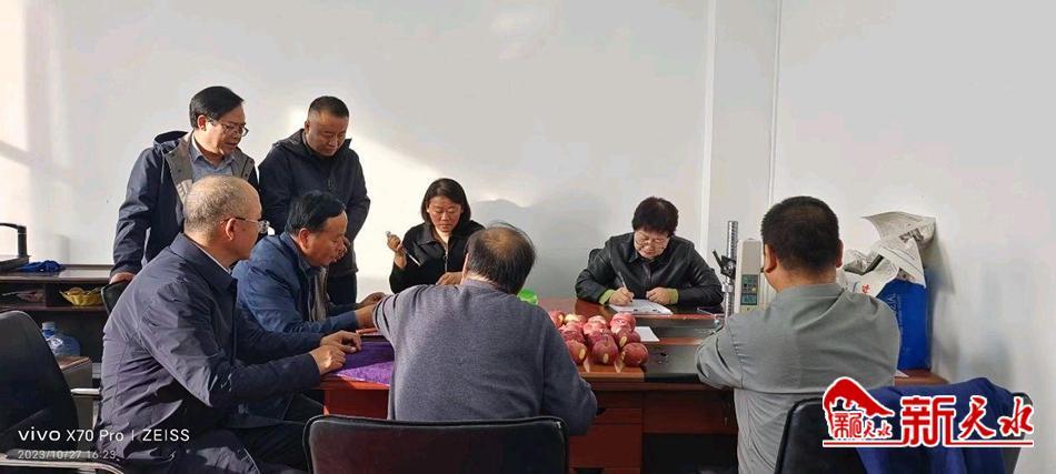 特派团成员还到雪原果品有限公司种植采购基地、秦安县闫家沟农业专业合作社、红又红农民专业合作社、绿野种植专业合作社等地,进行了富士苹果生产调研、果实采样和品质测定,对13个合作社苹果的单果重、着色度、硬度、可溶性固形物、酸度等果品品质指标的数据进行了综合分析。