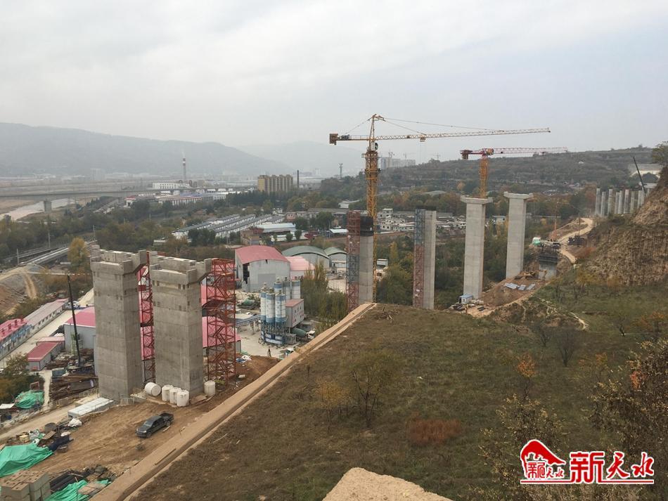 10月31日,记者在天庄高速渭河特大桥主桥施工现场看到,工程技术人员正在克服重重困难加紧施工。渭河特大桥作为天庄高速枢纽控制性工程,上跨陇海铁路,其主桥设计为一座全长290米的双幅单墩转体桥,转体重量超过2万吨,转体高50.9米,由于桥梁墩高较大,转体T构易出现纵向和横向不平衡现象,为此施工方中铁七局采用挂篮悬臂浇筑工艺,进行桥梁两端对称浇筑施工。