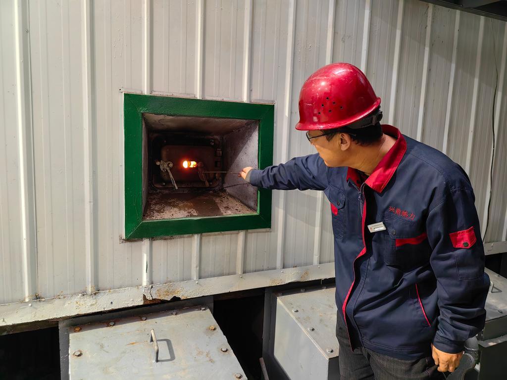 11月1日,在沈阳兴鼎热力供暖有限公司北塔热源厂,工作人员查看锅炉运行情况。新华社记者 白涌泉 摄