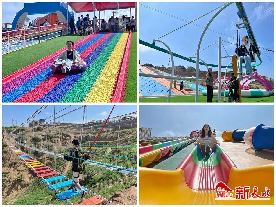 每逢周末,秦安县兴国镇高坪游乐园里人声鼎沸,热闹非凡。碰碰车、小火车、彩虹滑道、大型蹦床等众多娱乐项目让小朋友们流连忘返;喝茶、烧烤、吃火锅,俯瞰高铁、高速、国道穿行而过,眺望花篅子生态园里五彩斑斓的秋色,成年人也在这里放松身心,享受“偷得浮生半日闲”的惬意时光。