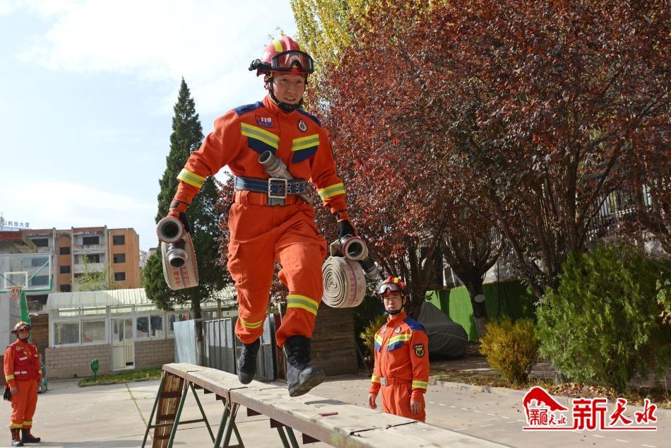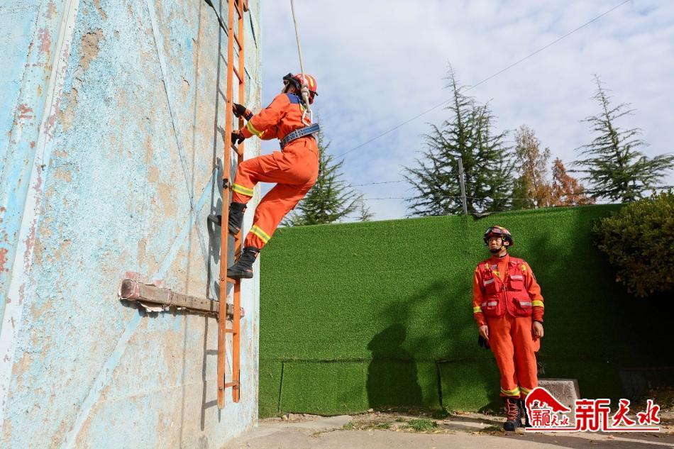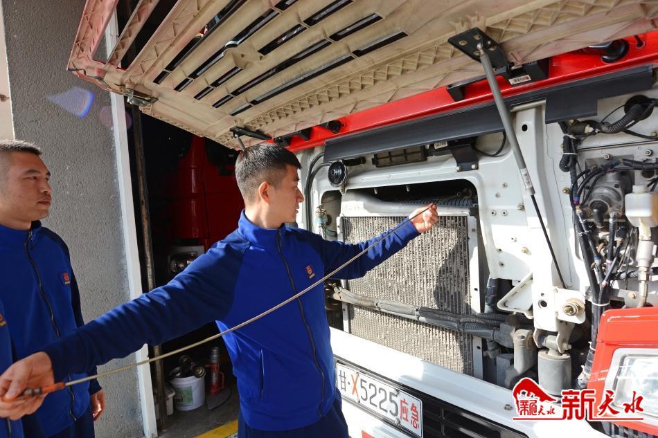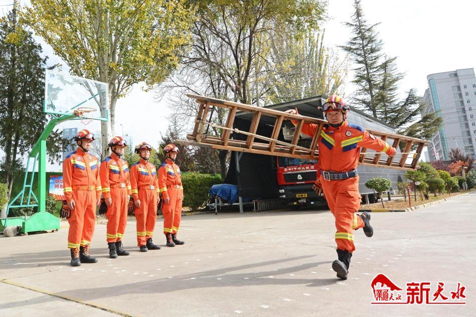 11月3日,天水市秦州区天水郡消防救援站的消防员在保养消防应急救援车辆,训练“攀登挂钩梯上楼、百米障碍救助操 、60米肩梯操”等项目。入秋以来,天水市各消防救援站以练代战,增强训练工作的针对性、科学性和实效性,坚持从难从严从救援需要出发,大力开展消防业务训练活动,提高灭火救援科学指挥能力和实战效能。