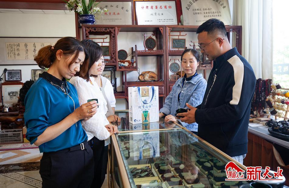 武山雕琢玉器历史悠久,从事鸳鸯玉夜光杯制作35年的贾宝同,是夜光杯雕非遗代表性传承人,也是薛红生学习的“鸳鸯玉雕师”劳务品牌培训班老师。
