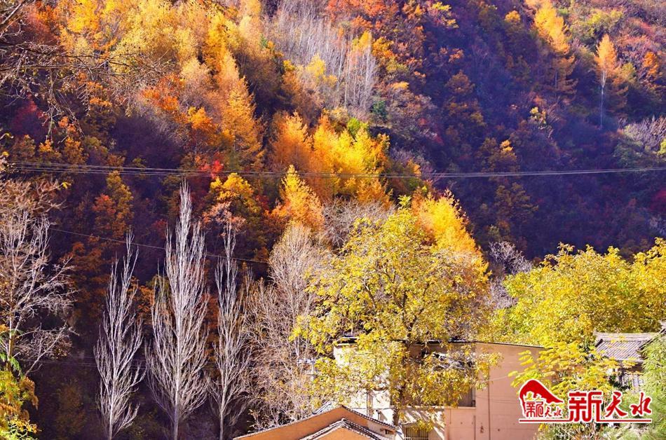 武山秋景,绘就一幅又一幅的七彩山水画卷。秋叶随风摇曳,村落掩映群林,渭河潺潺远去,炊烟袅袅升起。在水帘洞、鲁班山和杨河等地,山峰巍峨雄壮、重峦叠嶂,由深红、金黄、橙红、翠绿交织在一起的秋日胜景,与蓝天白云相映成趣,显得更是壮丽无比。(郭冰凌 摄)