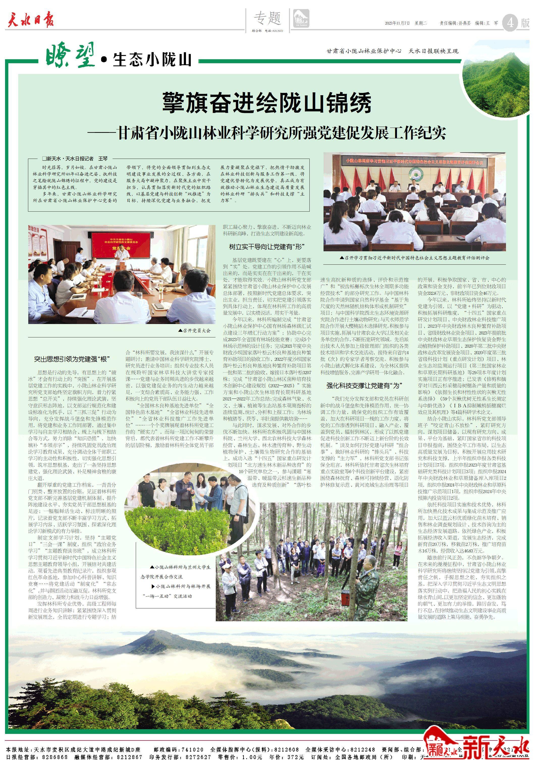 踏浪前行风正劲,不负韶华争朝夕。在未来的漫漫征程中,甘肃省小陇山林业科学研究所将继续坚持以党建为引领,高擎责任之帆,手握思想之舵,夯实组织之基,把深入学习贯彻习近平生态文明思想落实到行动中,把造福人民的初心实践在绿水青山间,以更加坚定的信念、更加蓬勃的朝气、更加有力的举措,踔厉奋发,笃行不怠,在持续推动生态文明建设事业高质量发展的道路上策马疾驰,奋勇争先。