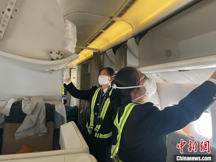首都机场海关关员对入境航班客进行登临检疫监管。牟明 摄