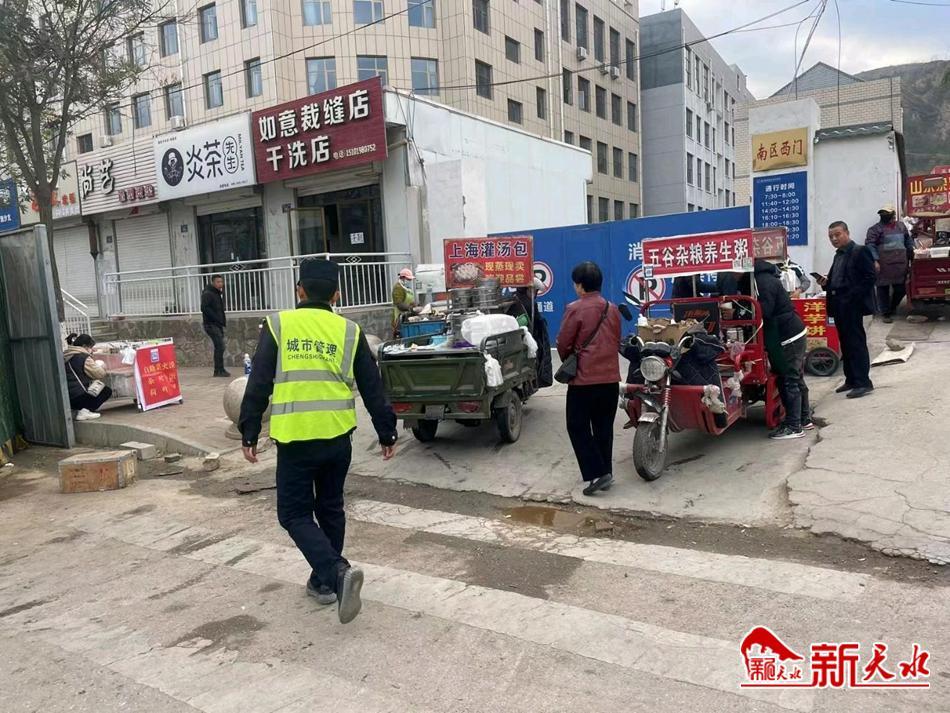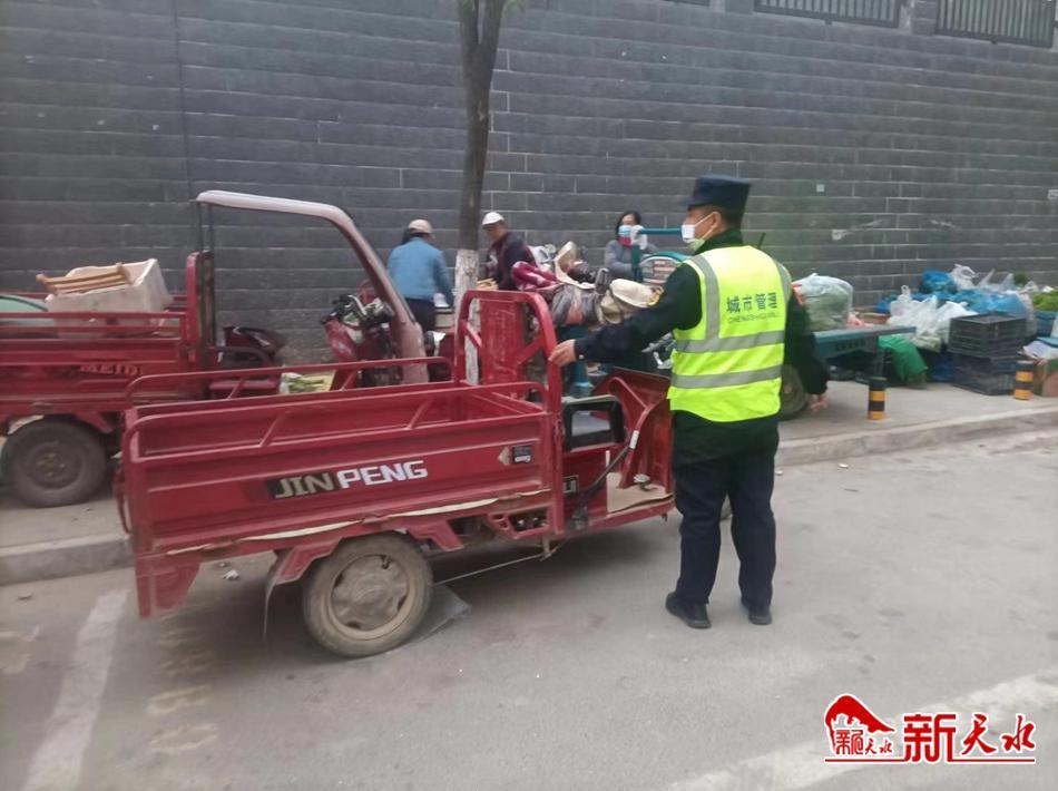 执法队员坚持文明执法,以劝导为主、执法为辅对当事人进行教育劝说引导,督促指导当事人守法、规范、文明经营。同时,中队对山水新城北区南门临时早市,福门、福田小区等沿线开展“一对一、点对点”宣传教育,有针对性地普及相关法律法规和规范要求,引导其遵守相关法律规定、文明规范经营,全面提升城市面貌和环境秩序。