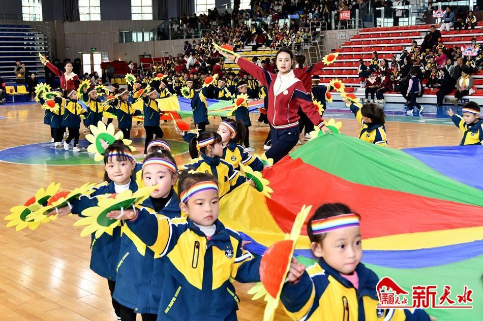 上午9时,伴随着嘹亮的运动员进行曲,小运动员在老师和引导员的引领下排着整齐的队伍,高喊着口号,雄赳赳、气昂昂地迈入赛场,全体幼儿老师、小朋友和家长在快乐的亲子趣味游戏中体验别样的人间真情,各幼儿园师生轮番登场的《中华美少年》《花样篮球》《花棒亲子舞》《雪龙吟》《花棍舞》《伞花朵朵花》《爱跳舞的小怪兽》《功夫宝贝》《花样年华》《鸭梨大》《象王行》《七彩雨伞变变变》《幸运一击》等寓教于乐的亲子趣味活动,进一步调动了孩子们参与体育活动的积极性,为家园共育架起了一座“彩虹桥”。