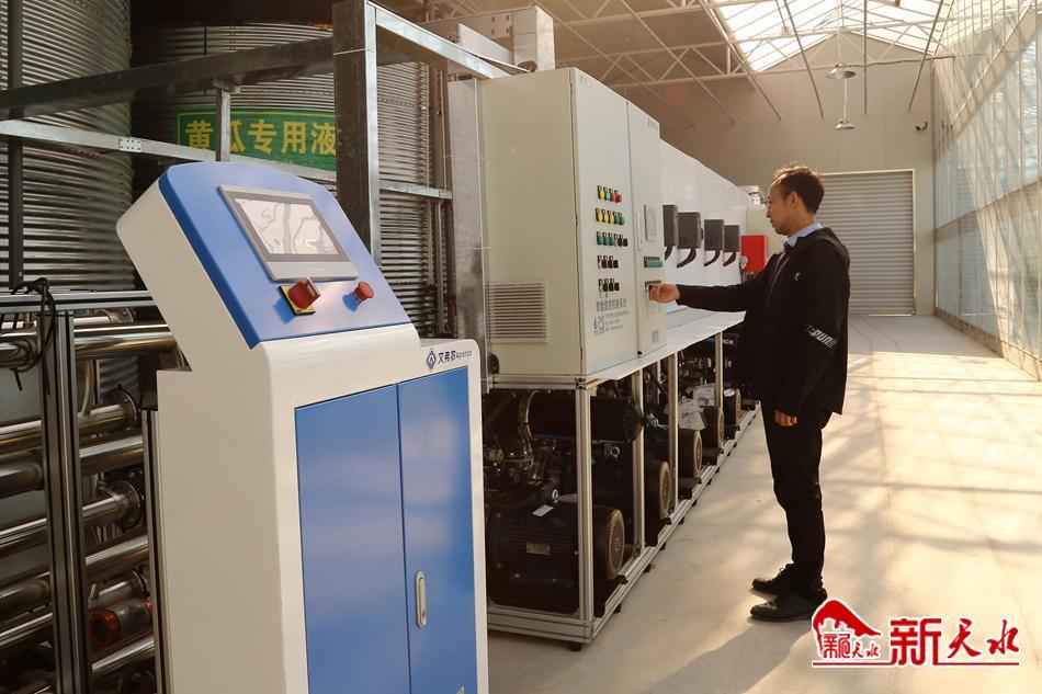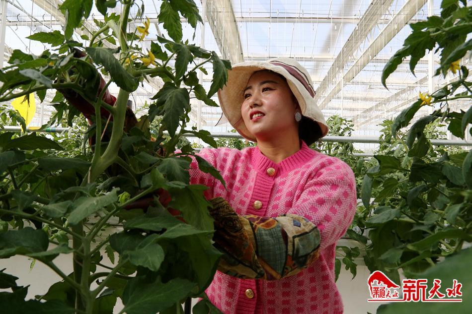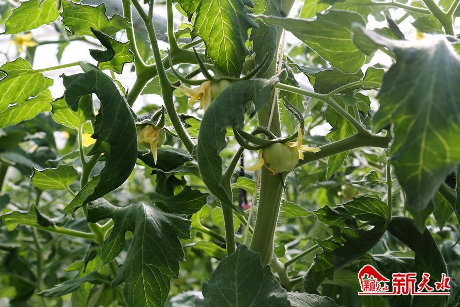 在崭新的智能玻璃温室内,一行行立体化无土栽培的番茄架错落有致,一株株近1米高的番茄藤缠枝绕蔓不断顺着架绳向上“爬”,一个个龙眼大小青涩圆润的果实破花而立,探头探脑极富活力。“你看,这些秧苗下面都插着‘输液管’,由智能管理控制中心统一调配的水肥营养液会通过‘输液管’输送到番茄根部。”李文平拨开番茄叶向记者介绍,温室采用全自动循环式水肥一体化灌溉系统,具有施肥精准、肥效高、无污染、零排放的优点,智能传感器将水肥经管道输送到“土壤”里,并结合番茄的生长情况,自动调整肥水配比,确保番茄苗在每个生长阶段皆能“吃饱喝足”。