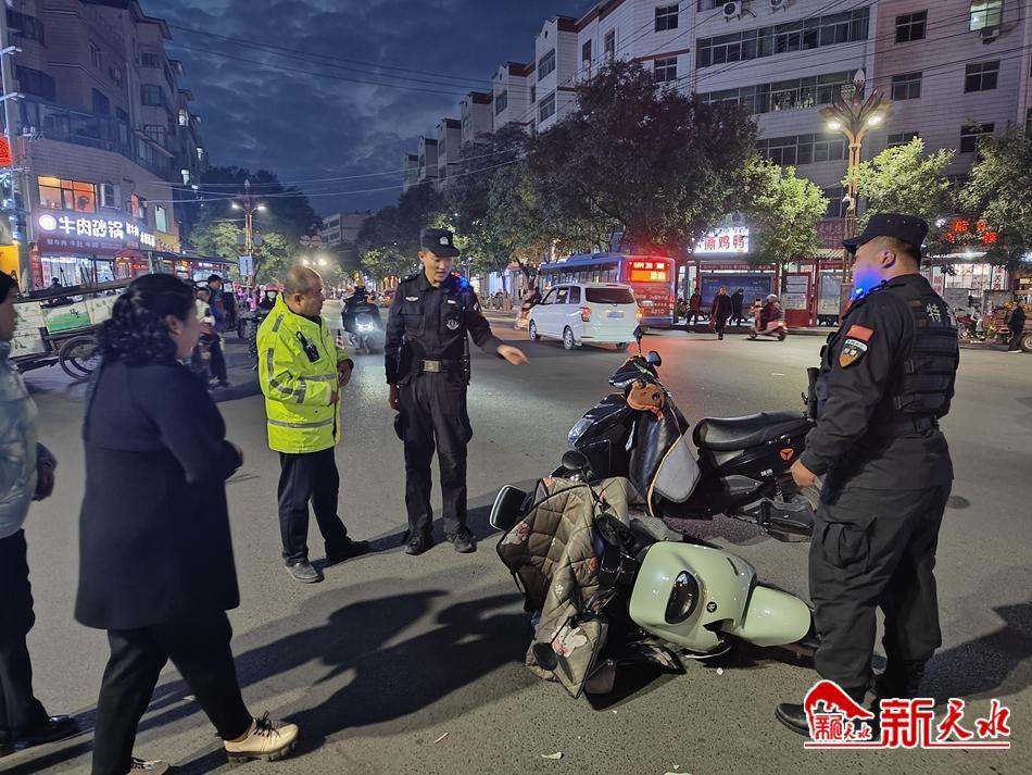 “有人撞人后逃了,快抓住他。”当时,听到群众的喊叫声,正在甘谷县城西关十字路口附近执行社会面巡逻防控任务的特巡警队员看到一辆电动车倒在路中央,一名妇女在追另外一辆电动车。特巡警大队执勤小组组长王宇立即留下一队人员进行现场伤者的救治和道路交通疏导,其他人员驱车追赶肇事逃逸车辆。在附近群众的共同帮助下,最终在东大街将肇事逃逸电动车截停在路边。特巡警队员快速控制了肇事逃逸嫌疑人。随后,将该情况上报110指挥中心,向交警大队进行了案件移交。