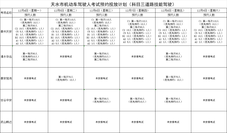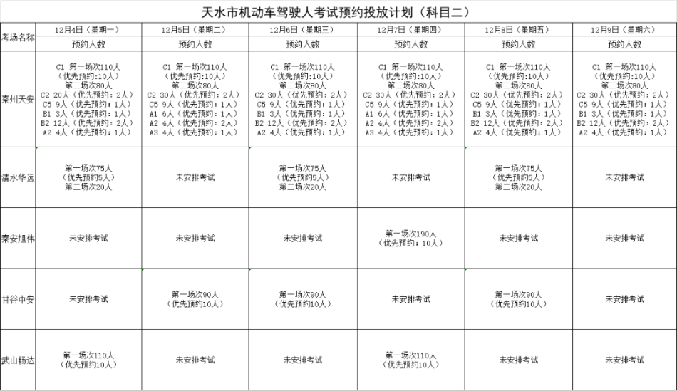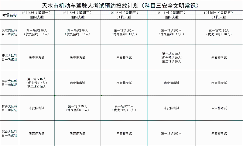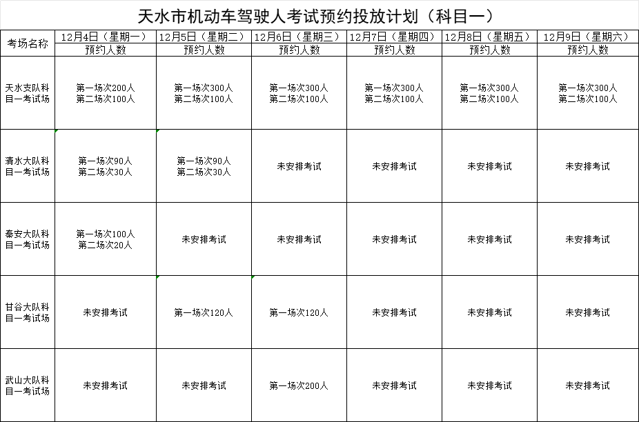 天水机动车驾驶人考试计划公告(2023年12月4日至12月9日)