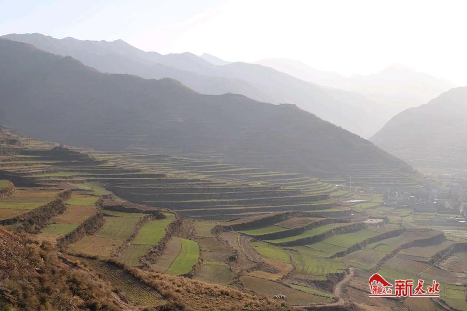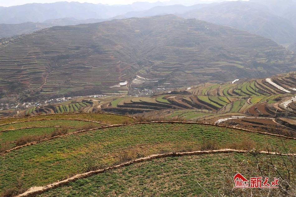 新天水讯【通讯员蒲爱民 杨洋】近期我市天气晴暖,记者走进武山县滩歌镇的小麦和油菜地里,看到小麦、油菜长势喜人,生机盎然、在层层叠叠的梯田里,宛如一座座绿色的阶梯,让人心旷神怡。