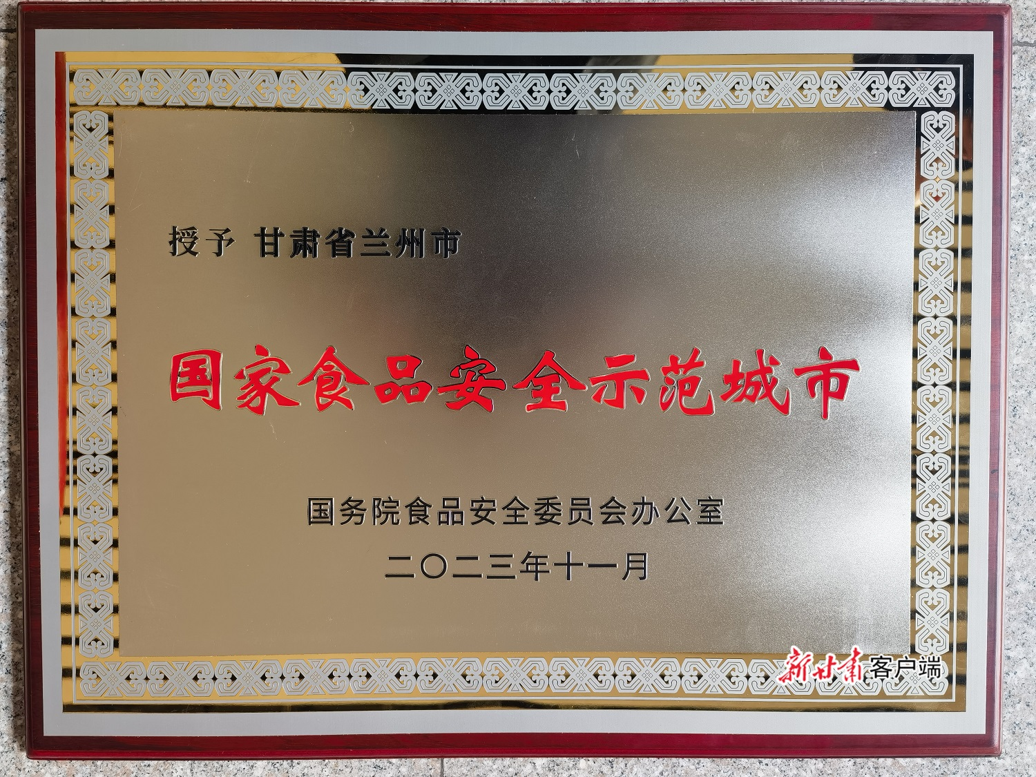 新甘肃客户端兰州讯(新甘肃·甘肃日报记者 薛砚 马小龙)记者从兰州市市场监督管理局获悉,经国务院食品安全委员会批准,11月28日,兰州市被正式命名为“国家食品安全示范城市”。