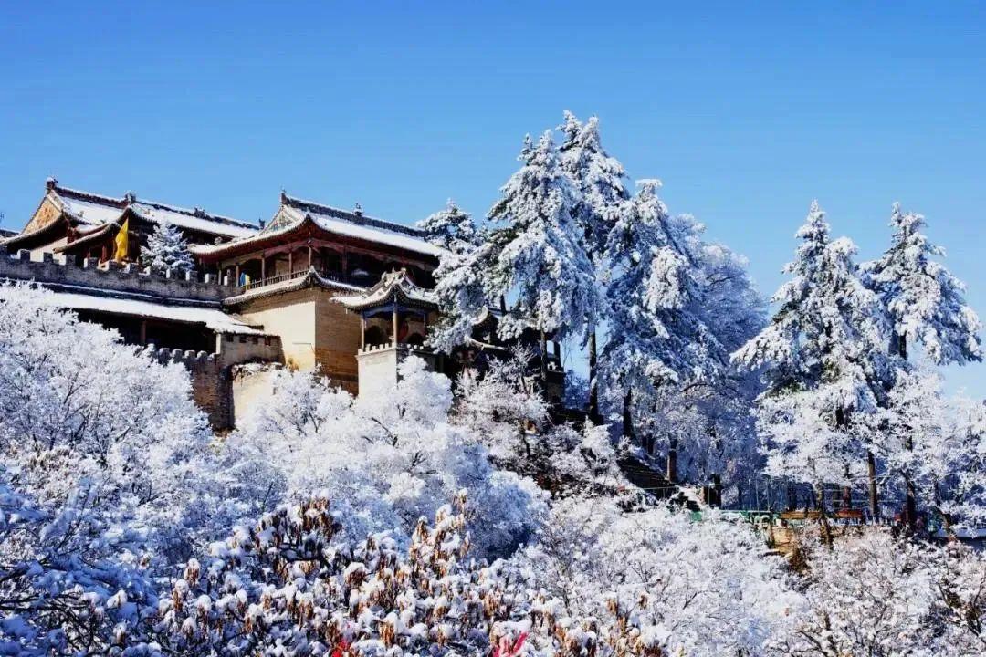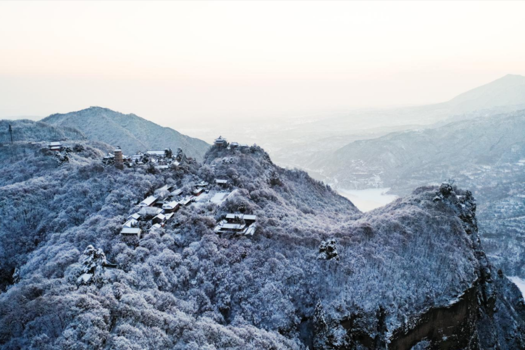 四野茫茫,无边无际。雪落在广袤的山间,银装素裹,雪梨绽放,山涧峰壑,红墙黛瓦。瞬时,宛如天上宫阙。麦积山大景区的雪,一铺万顷,展现世间的纯粹。