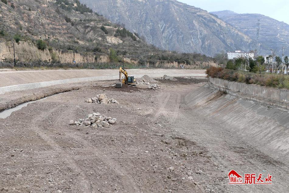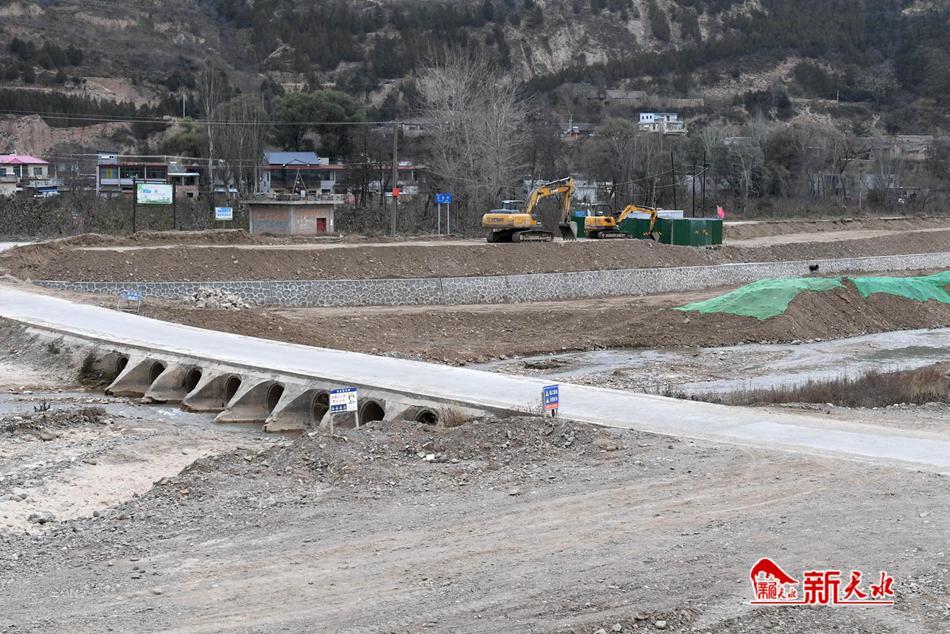 11月29日,在秦州区太京镇北崖村,一台台挖掘机在河道里来回穿梭作业,两岸已平整出坡面,堤防工程初具雏形。
