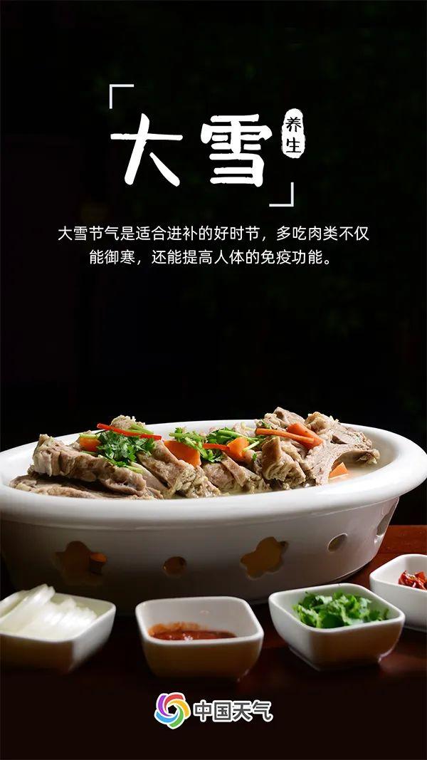 大雪也是适合进补的好时节。冬天的寒冷为放肆吃肉提供了充足的理由,肉类不仅能为我们的身体提供足够的热量以抵御严寒,还能提高人体的免疫功能,促进新陈代谢。不过,进补也要有“度”,除了吃肉,也要适当吃一些新鲜的水果和蔬菜,做到营养均衡。