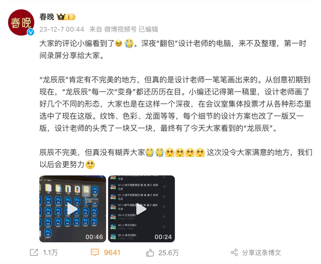 “龙辰辰”肯定有不完美的地方,但真的是设计老师一笔笔画出来的……每个细节的设计方案也改了一版又一版,设计老师的头秃了一块又一块,最终有了今天大家看到的“龙辰辰”。辰辰不完美,但真没有糊弄大家,这次没令大家满意的地方,我们以后会更努力。