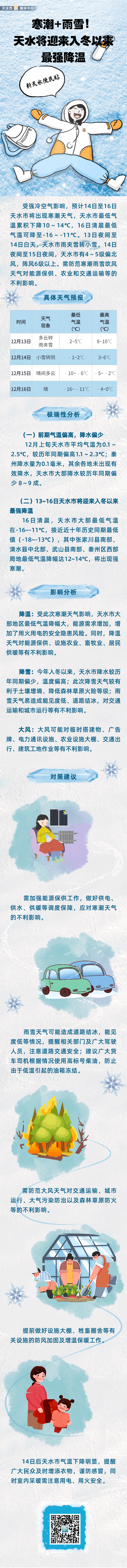 【新天水便民贴】寒潮+雨雪!天水将迎来入冬以来最强降温