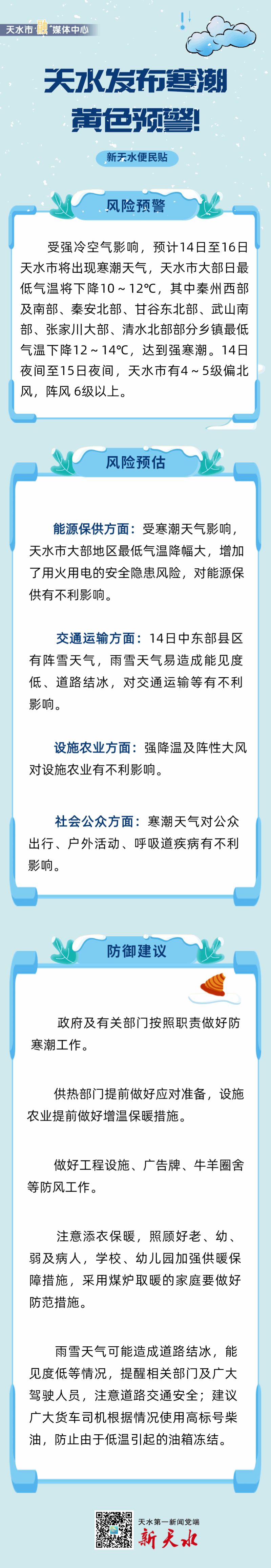 【新天水便民贴】气温降10~12℃!天水市发布寒潮黄色预警
