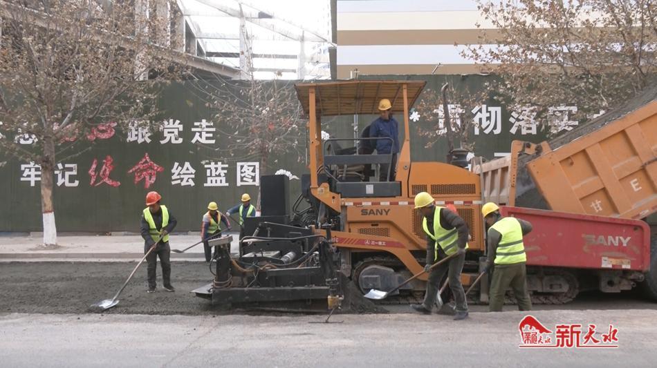 这几天,秦安县城区供排水管网提升改造工程正在抢工期、赶进度。供排水管网已施工完毕进入路面恢复阶段,大型铺路机、压路机、运输车来来往往,现场一派繁忙。