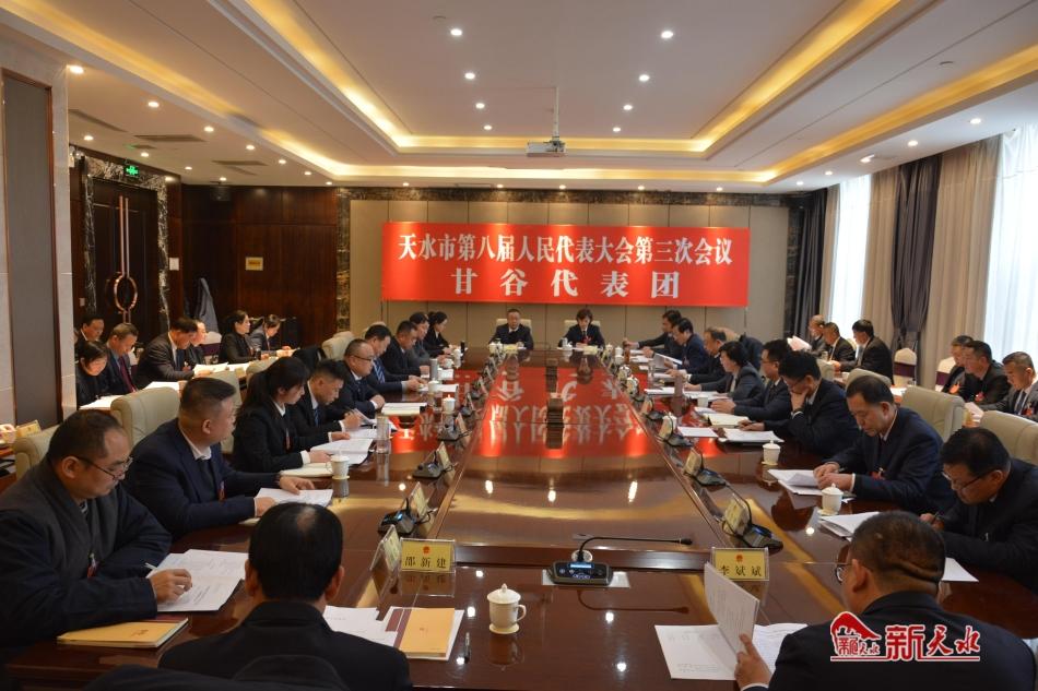 新天水讯【记者张彬霞】12月22日、23日,参加市第八届人大三次会议的甘谷代表团对政府工作报告、市人大常委会工作报告、市中级人民法院工作报告、市人民检察院工作报告进行了认真审议。会场气氛热烈融洽,代表们畅所欲言、各抒己见,积极为全面建设社会主义现代化幸福美好新天水建言献策。