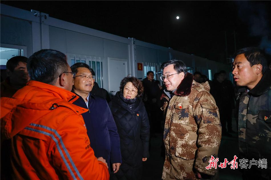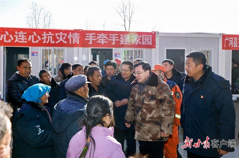 12月27日,省委书记胡昌升、省长任振鹤深入受灾镇村、集中安置点检查指导活动板房搭建和受灾群众安置等工作、看望慰问受灾群众。新甘肃·甘肃日报记者孟捷
