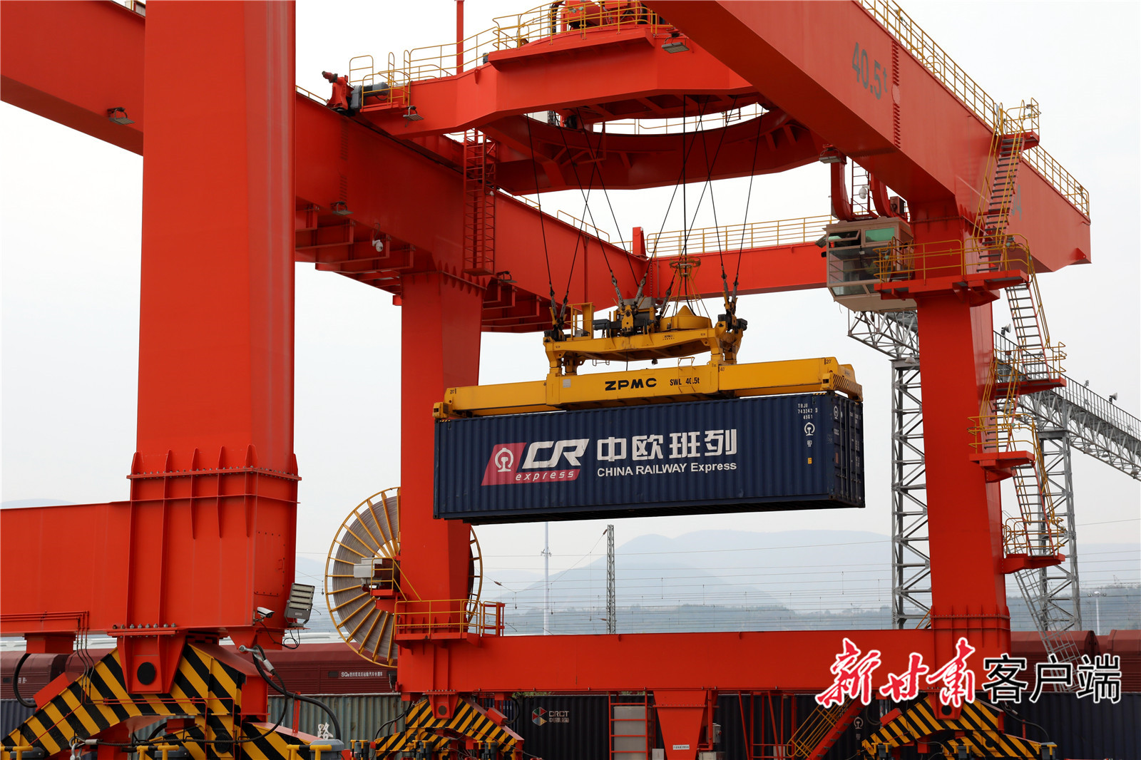 兰州新区铁路口岸作业区吊车、叉车发动机轰鸣,一派繁忙景象。新甘肃·甘肃日报通讯员宋佳龙