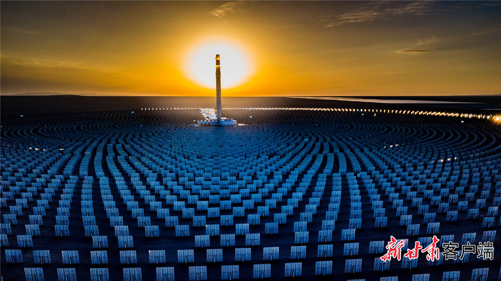 9月17日,敦煌100兆瓦熔盐塔式光热发电站构成独特的大漠风光。新甘肃·甘肃日报通讯员王斌银
