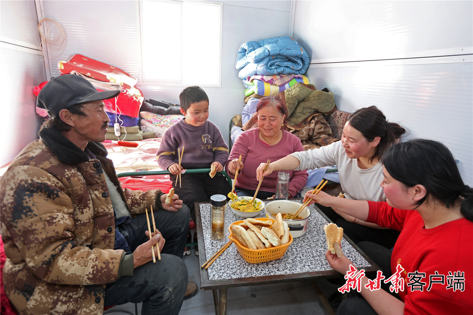 12月29日,积石山县刘集乡高李村受灾群众刘尕仓一家住进了活动板房。新甘肃·甘肃日报记者田蹊冯乐凯