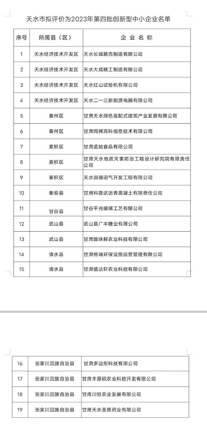 天水市拟评价为2023年第四批创新型中小企业的公示