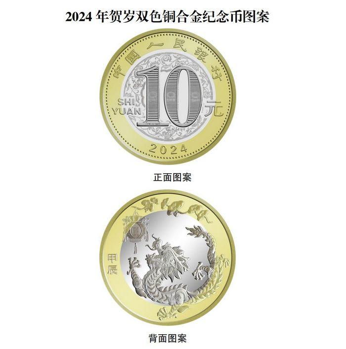 中国人民银行定于2023年12月15日起陆续发行2024年贺岁纪念币和纪念钞,其中金质纪念币1枚,银质纪念币1枚,双色铜合金纪念币1枚,纪念钞1张,均为中华人民共和国法定货币。