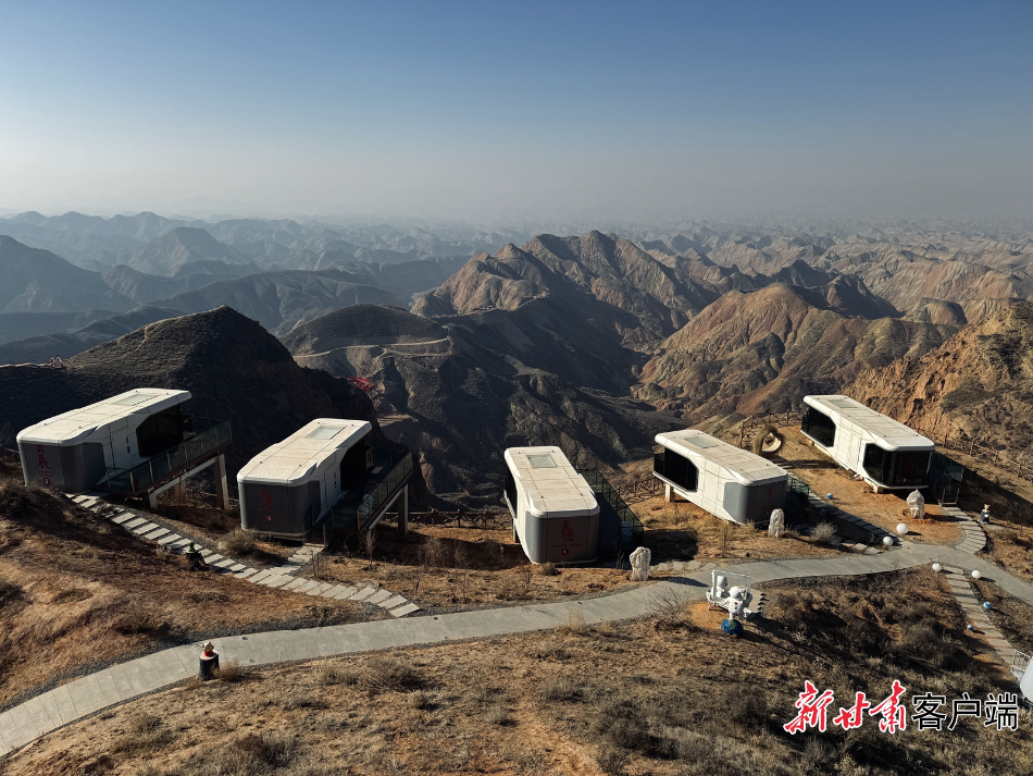 水墨丹霞景区的悠游心宿太空舱依山而建、依景而居。